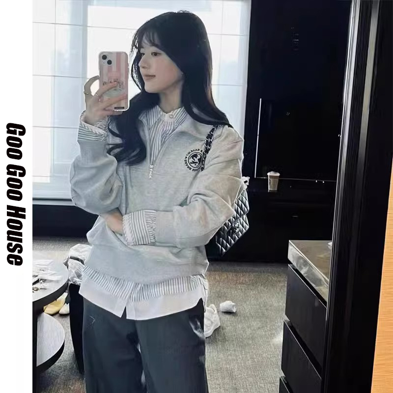 赵露思同款拉链灰色卫衣外套设计感小个子女宽松学院风秋季上衣潮