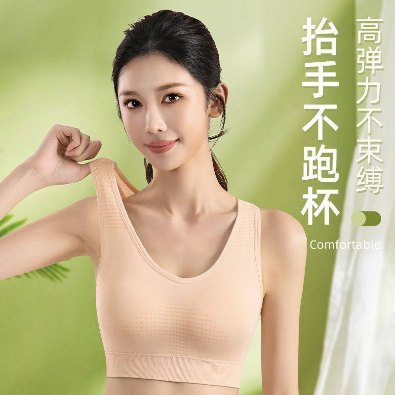 新款中老年人妈妈内衣女士棉质运动无钢圈聚拢无痕文胸胸罩背心式