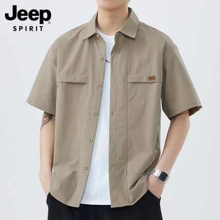 JEEP SPIRIT吉普短袖衬衫男2025新款美式半袖夏季痞帅工装外套潮