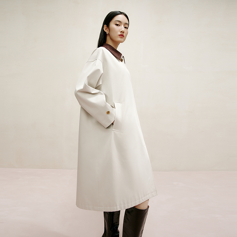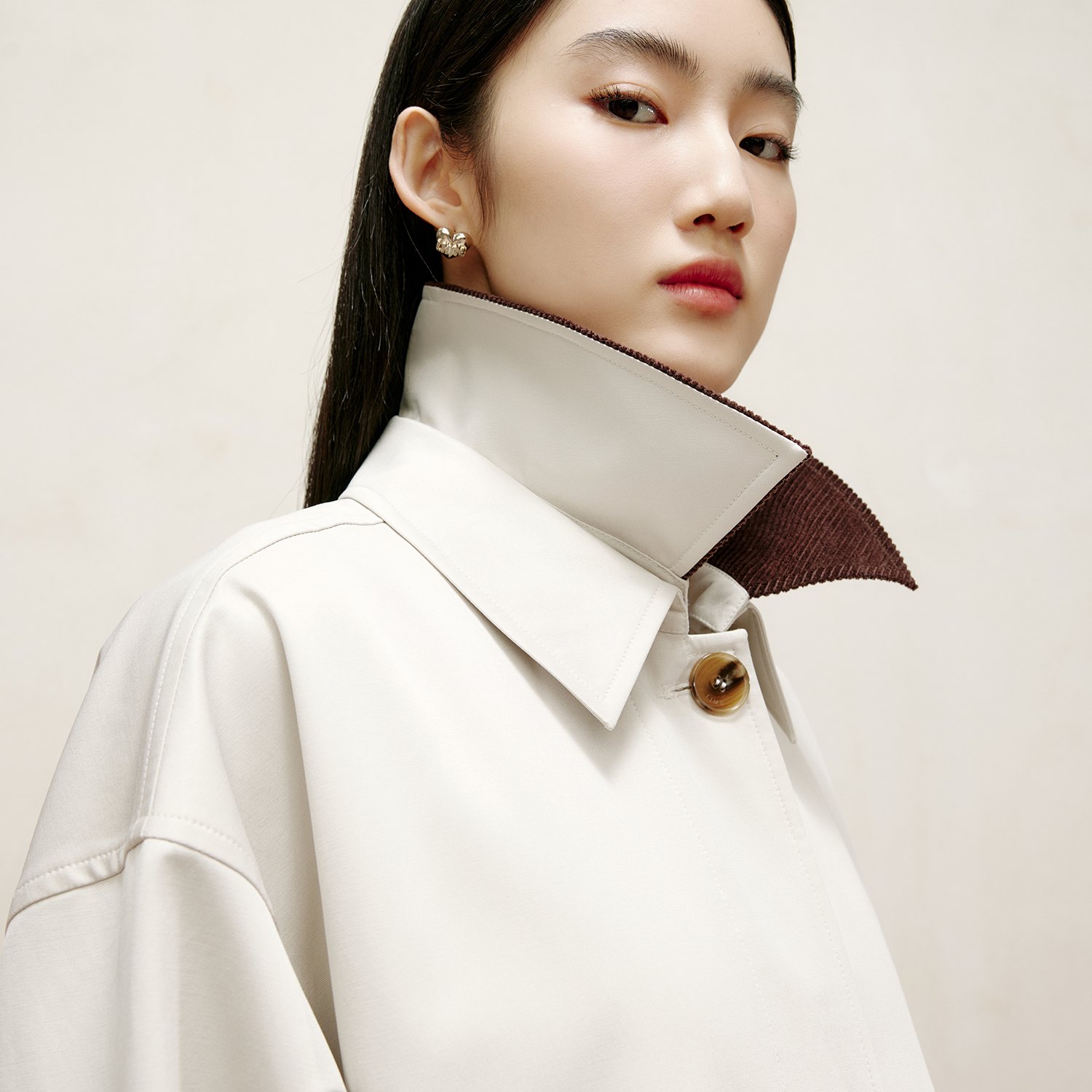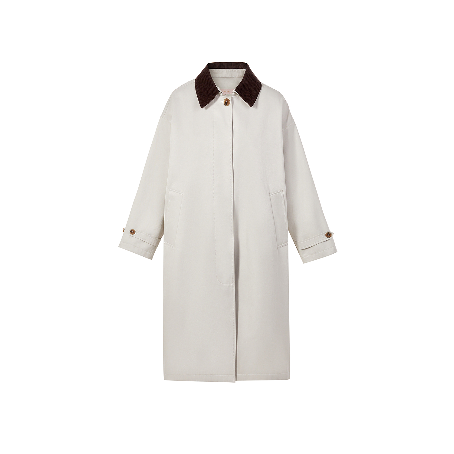 朗姿集团LIME莱茵灯芯绒翻领设计感长款风衣银灰色25春女外套