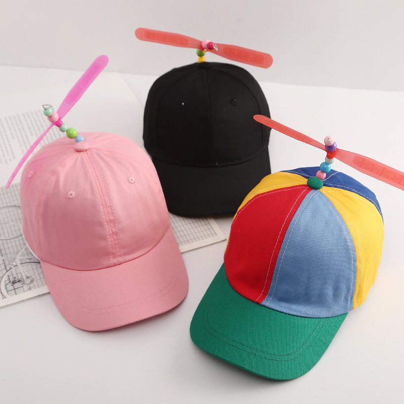 男女童螺旋桨竹蜻蜓帽子风车儿童鸭舌帽遮阳帽春秋幼儿亲子棒球帽