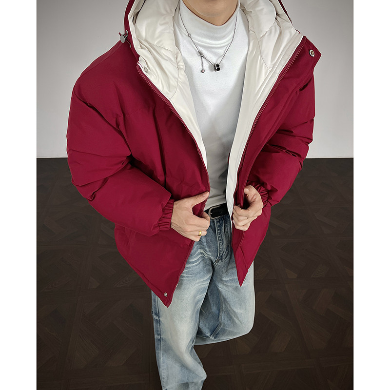 小青少年泥家clean撞色棉服男妮力加厚连帽短款棉衣街头嘻哈潮流