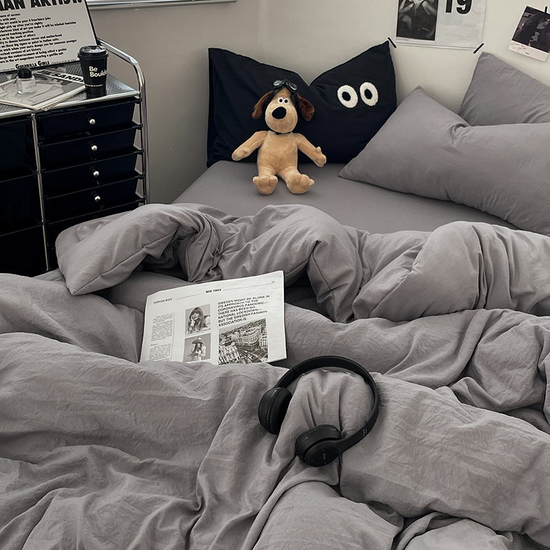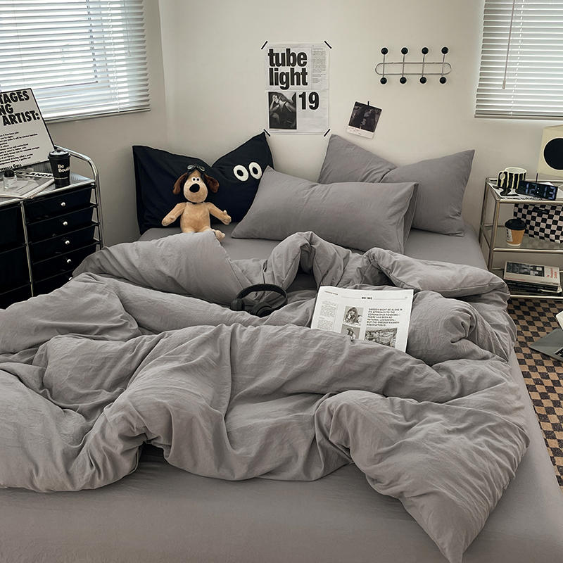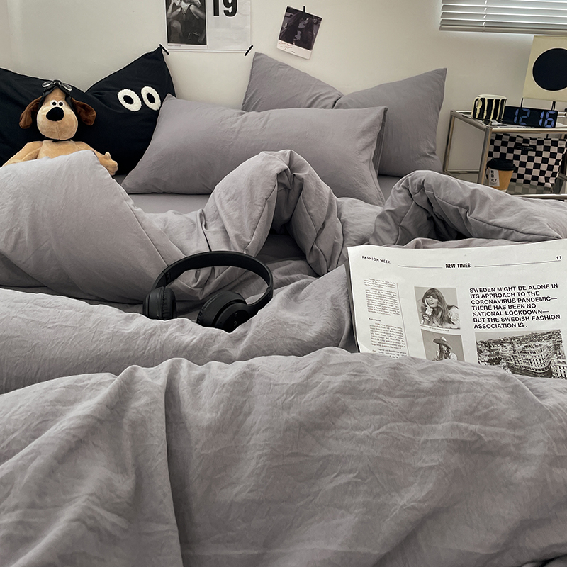 亲肤磨毛褶皱水洗棉四件套非全棉纯棉被套床笠床单学生宿舍三件套