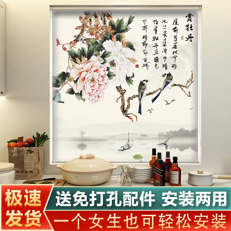 2025安装窗帘卷帘全遮光遮阳升降免打孔新款厨房卫生间卷拉式百叶