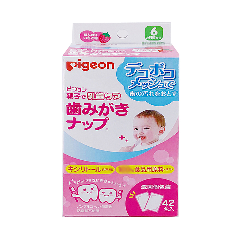 日本贝亲婴儿口腔清洁湿巾宝宝乳牙舌苔牙齿洁齿巾擦牙布42片草莓