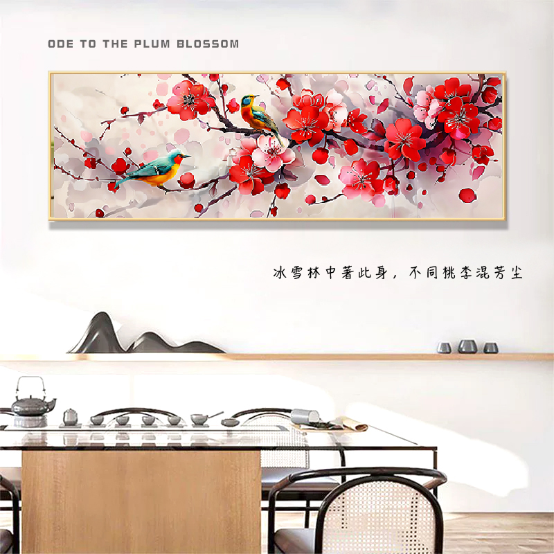 咏梅十字绣新款客厅梅花风景画满绣刺绣手工自绣简单好绣装饰挂画