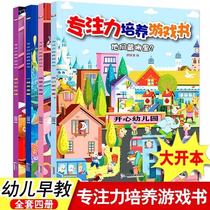 专注力培养游戏书全4册 3-6岁儿童益智游戏绘本找不同迷宫书隐藏的图画捉迷藏注意力记忆力幼儿早教全脑开发逻辑思维训练书籍
