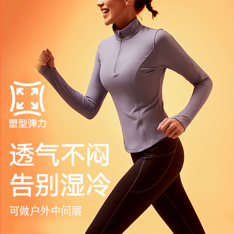 VfU喵喵绒运动上衣女半拉链健身服秋冬瑜伽服长袖加绒保暖户外T恤