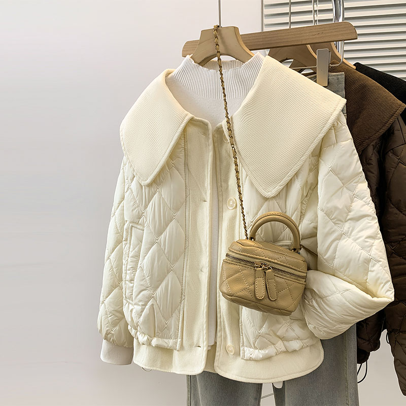 韩版简约海军领棉服长袖外套女2025年冬季新款短款小个子百搭棉衣