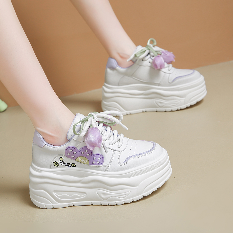 真皮厚底小白鞋女2025秋冬新款网红爆款内增高松糕休闲女单鞋板鞋