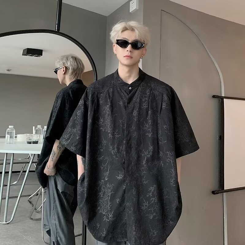 夏季薄款潮牌中国风冰丝短袖衬衫