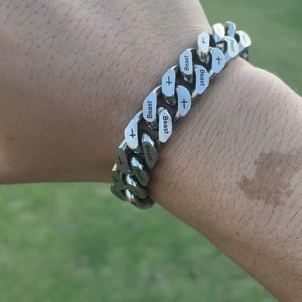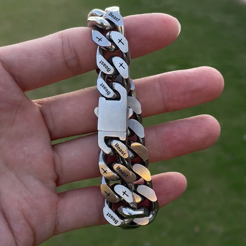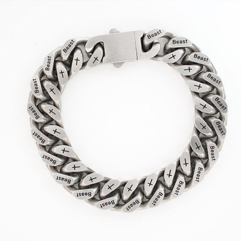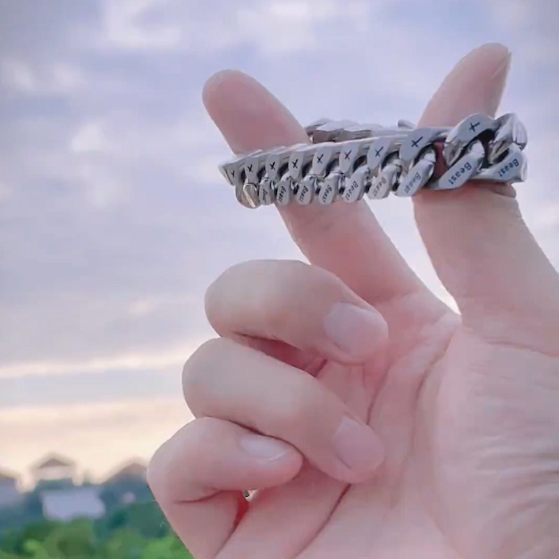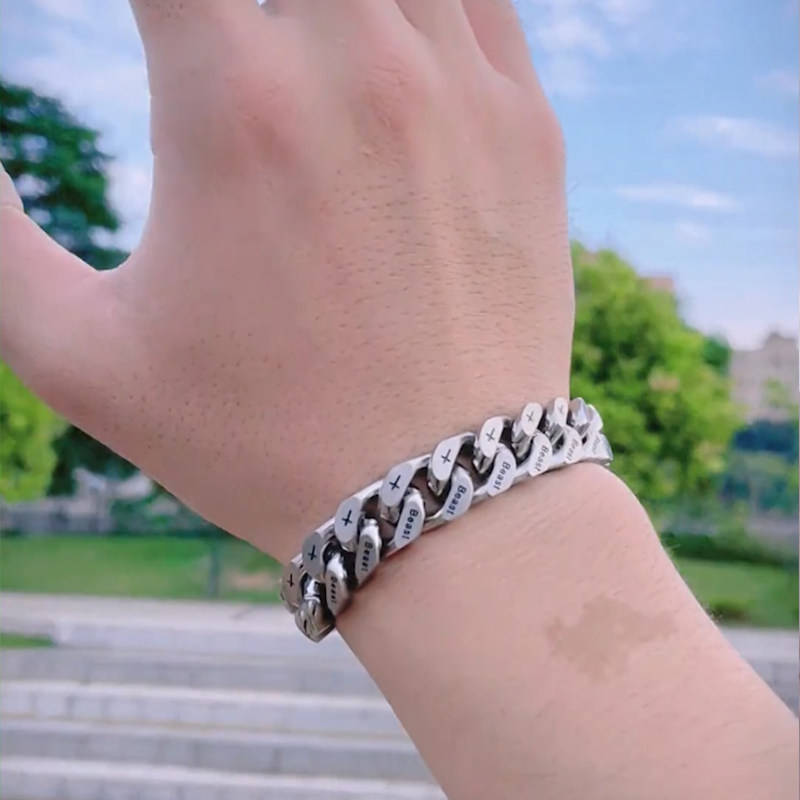 beast钛钢刻字古巴链手链男高级感银百搭手圈嘻哈个性手环情侣款