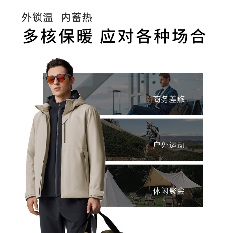 【软壳冲锋款】迪柯尼2025年冬季户外通勤男士保暖连帽羽绒服上衣