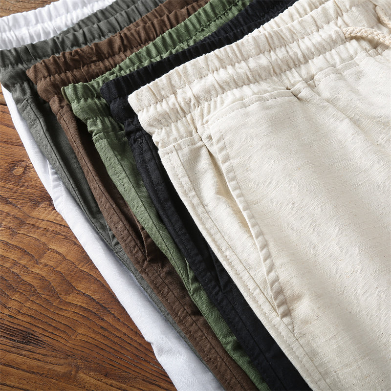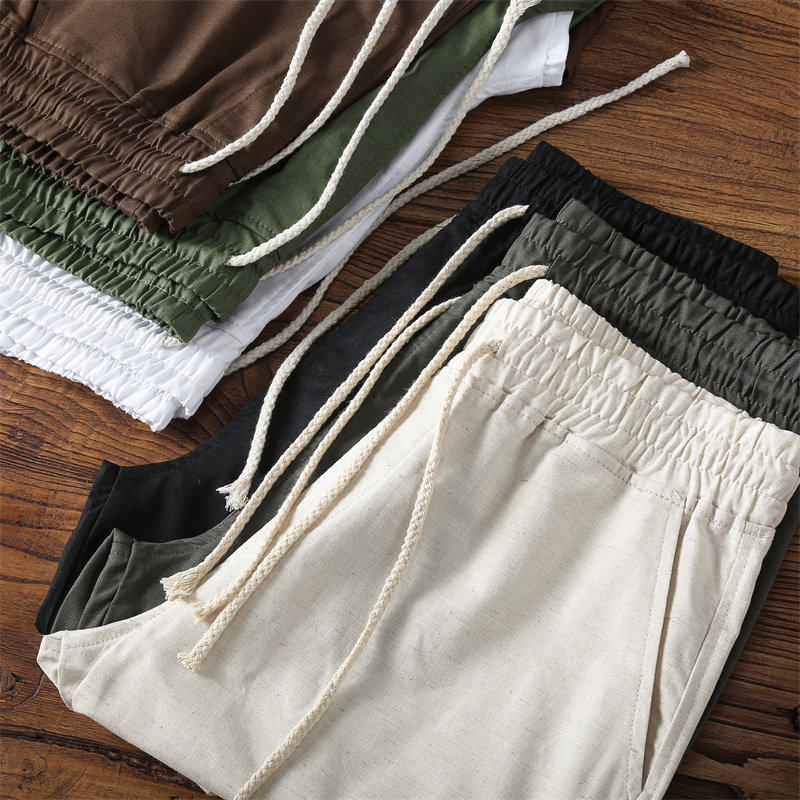 2025夏季薄款亚麻透气三分裤男士潮流百搭修身外穿美式休闲短裤子