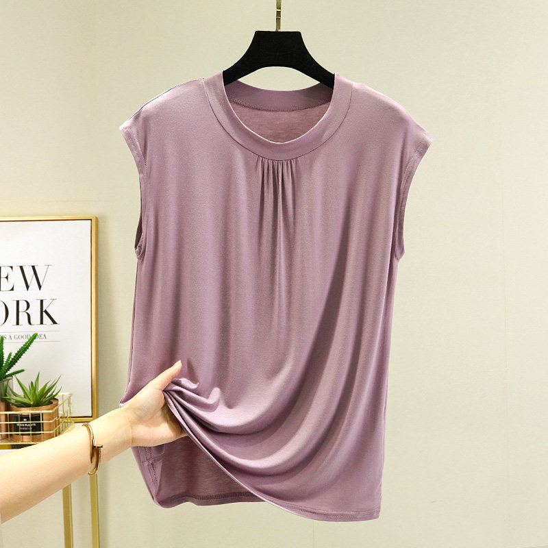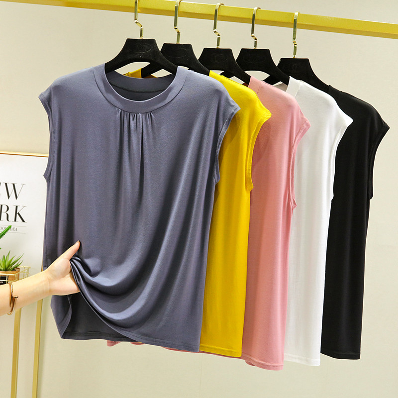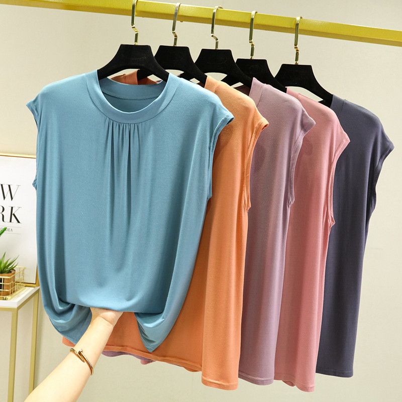 莫代尔背心女夏大码薄款内搭外穿宽松无袖T恤显瘦纯色打底衫上衣