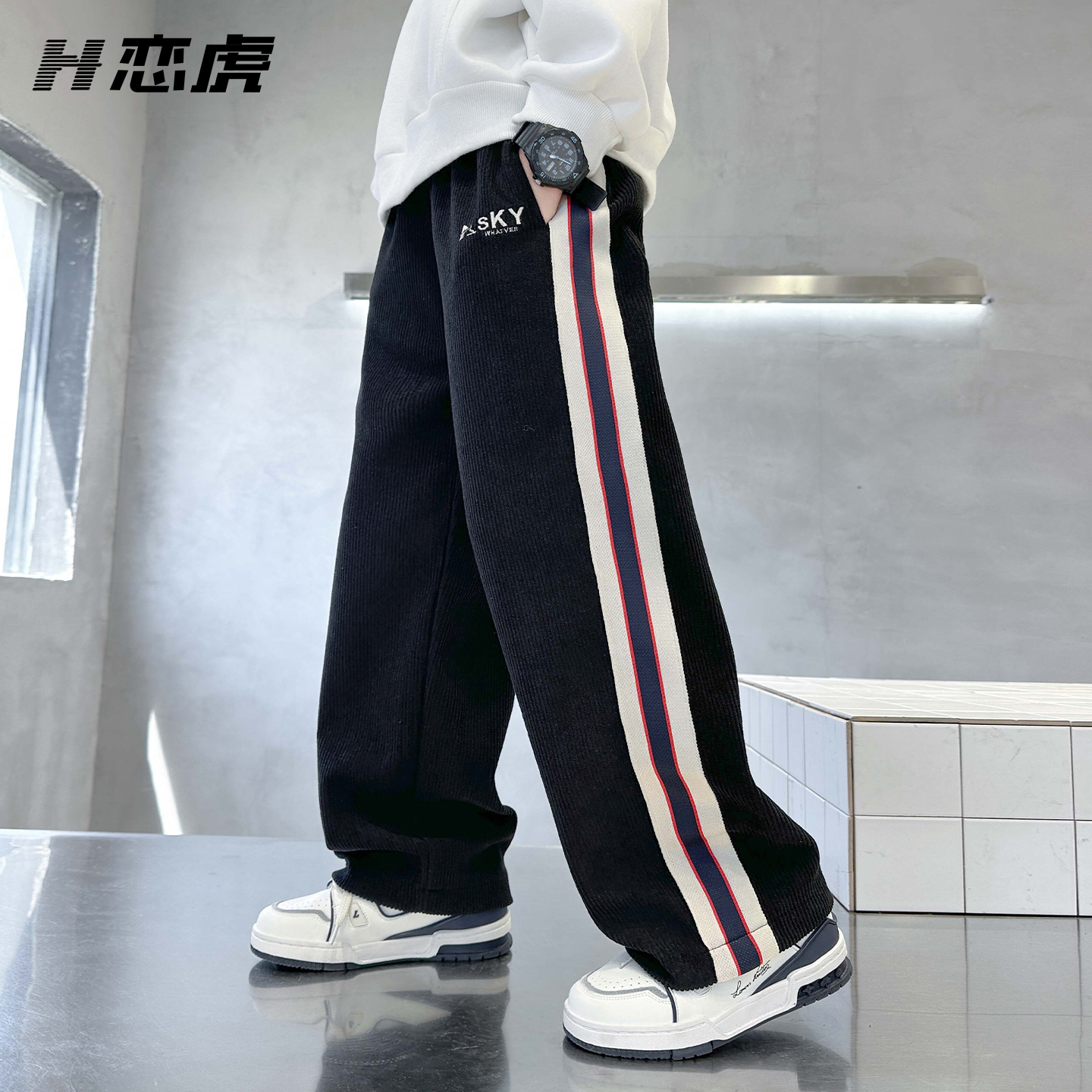 男童休闲裤春秋款2025新款儿童加绒裤子男孩宽松运动裤大童秋冬款