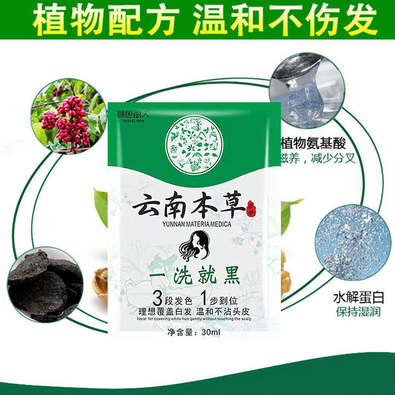 泡泡染发剂植物纯黑发膏健康染发一洗黑天然染发膏盖白发开袋即染