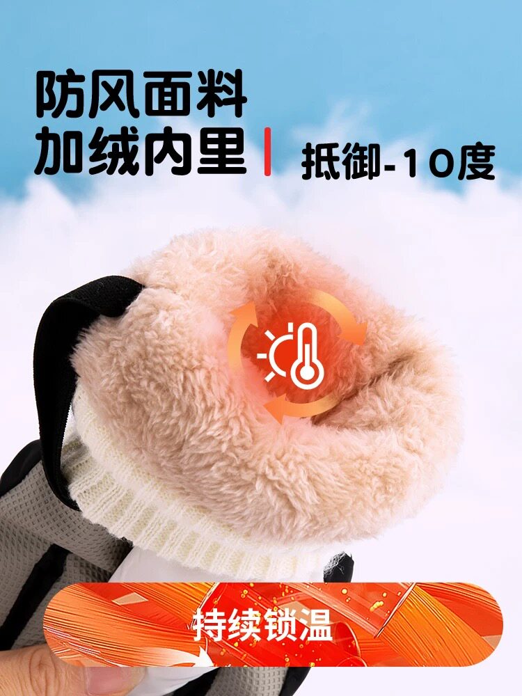 冬天保暖儿童五指滑雪手套少年户外防寒风男孩玩雪防泼水加绒防丢