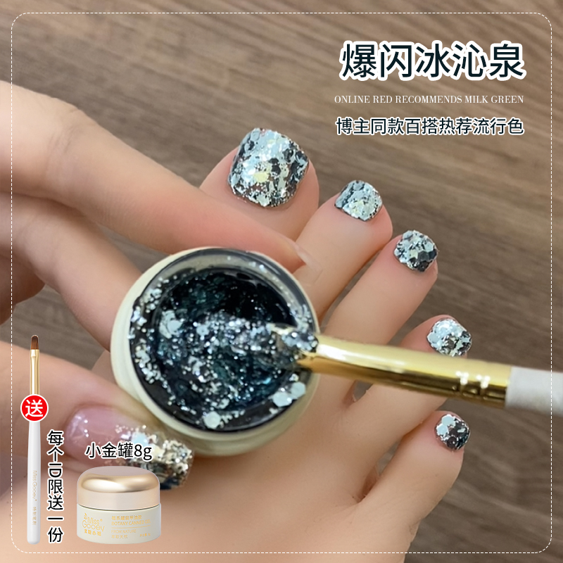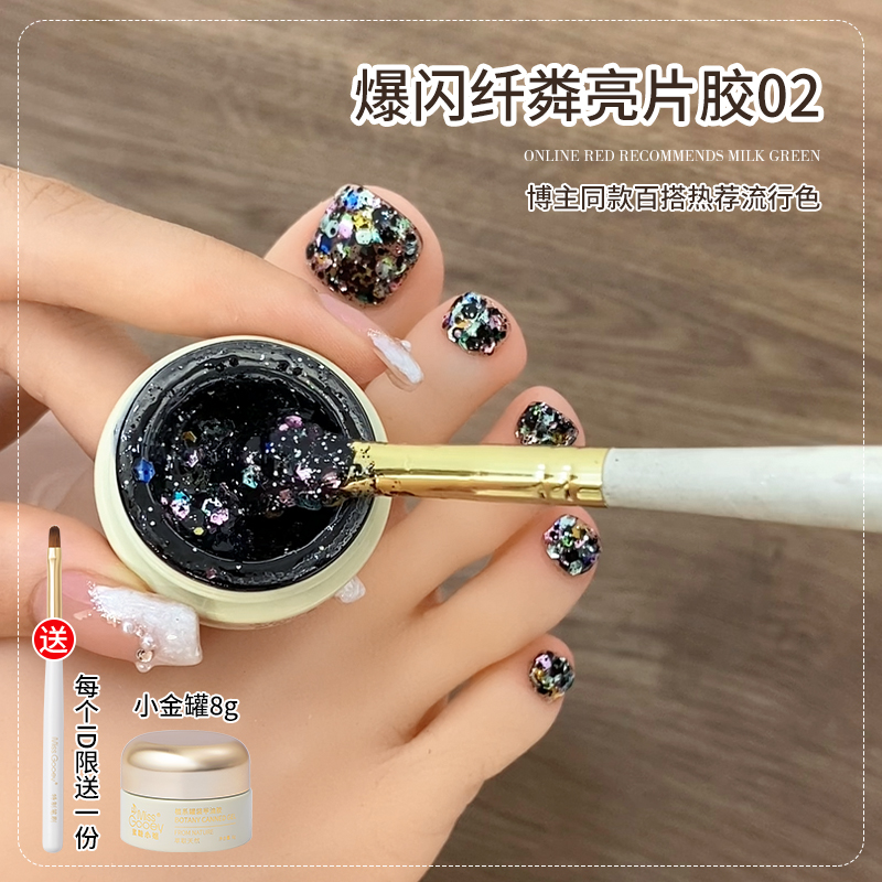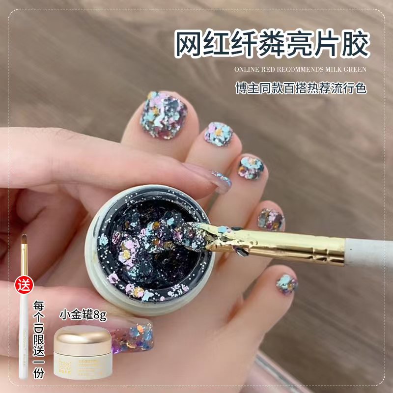 闪闪大亮片胶脚趾甲指甲油胶2025新款镭射闪片流行显白美甲店专用