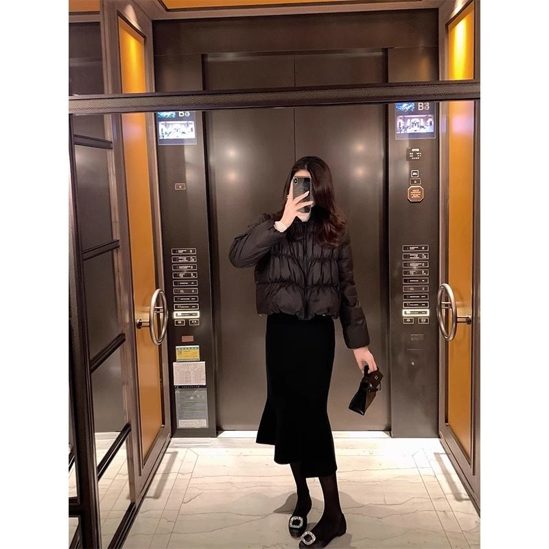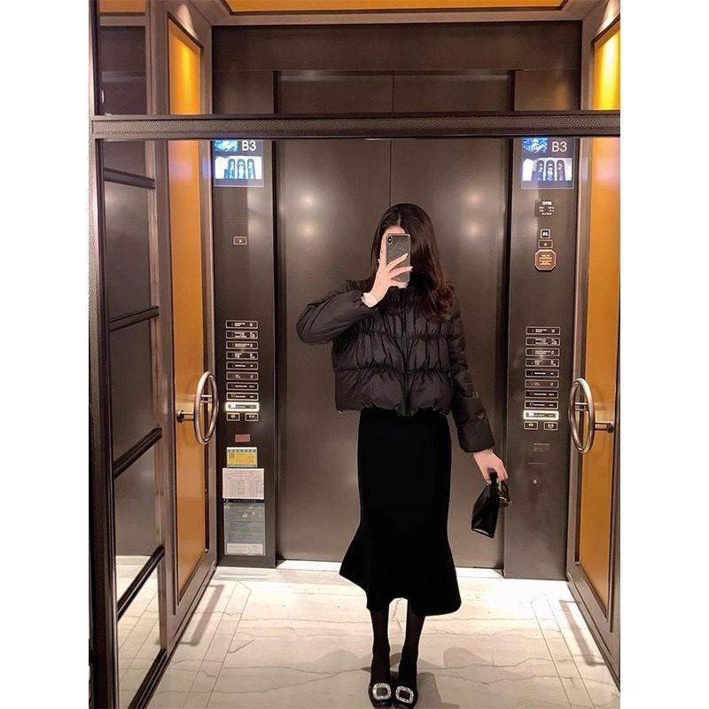 黑色针织鱼尾半身裙女秋冬季高级感A字裙高腰加厚羊绒中长包臂裙
