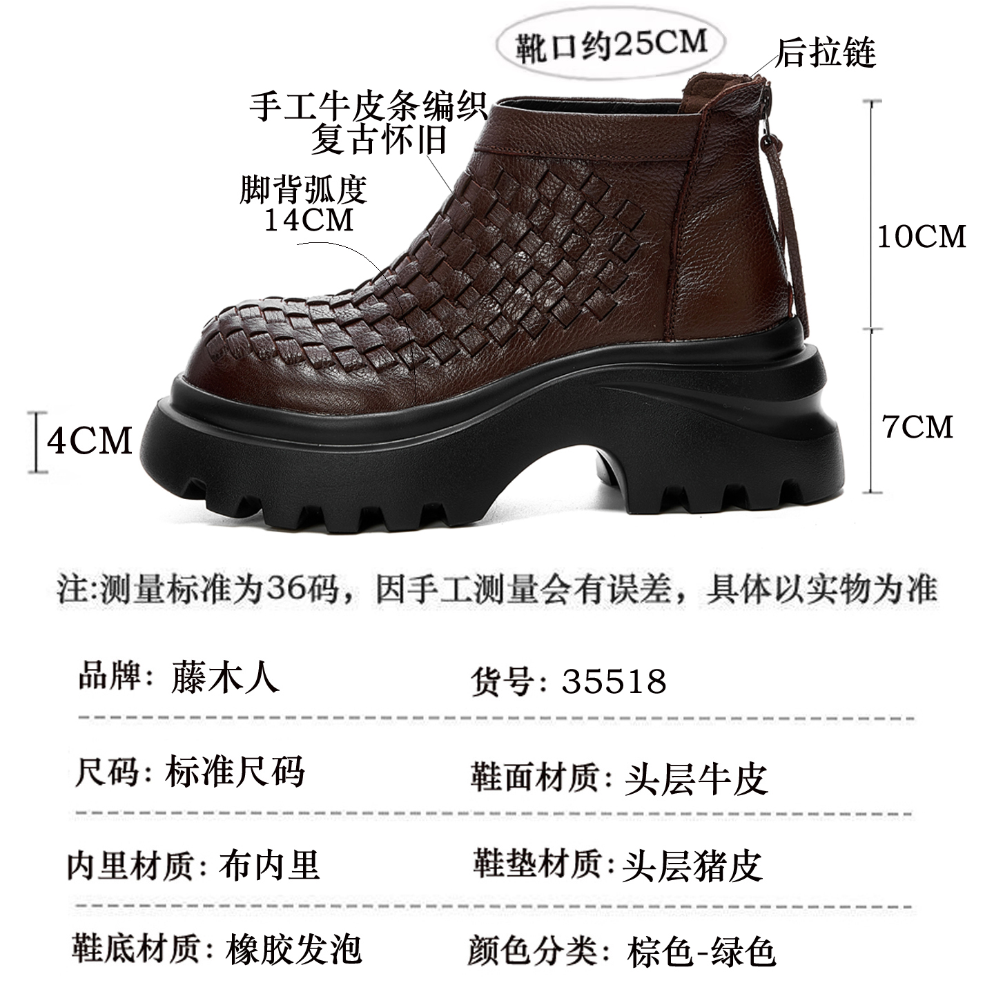 手工编织马丁靴女款2025新款春秋短筒女鞋高跟骑士靴小香风短靴子