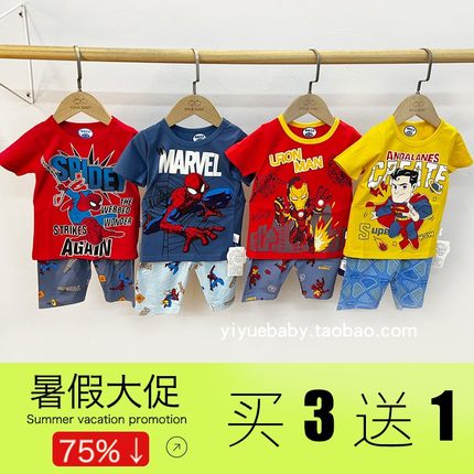 儿童睡衣夏季短裤薄款男童超人衣服3-5-6岁蜘蛛侠中裤套装男潮