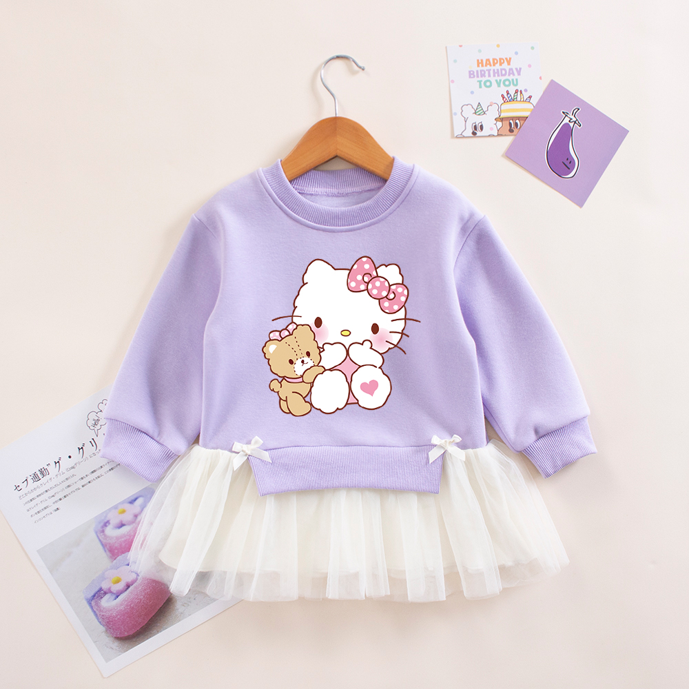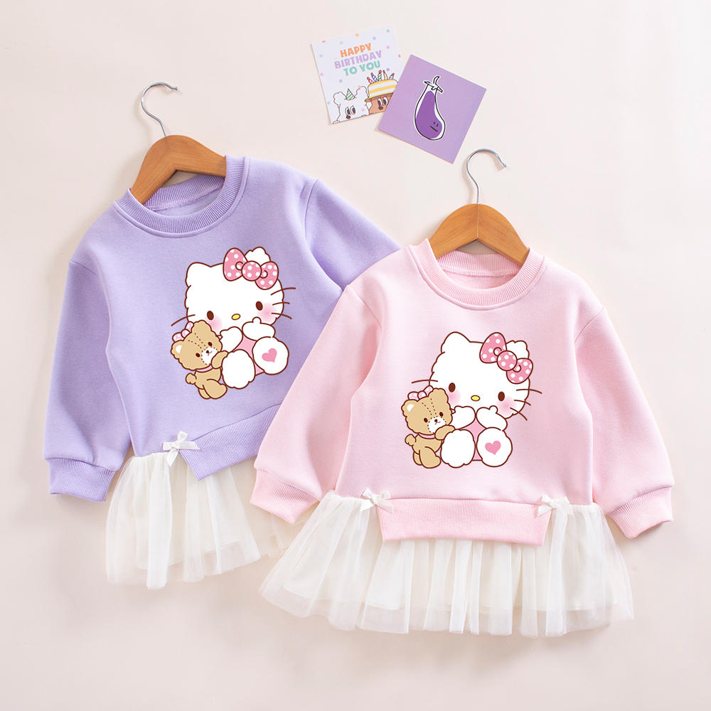女童连衣裙秋冬装洋气小猫衣服儿童公主裙纱裙小女孩加绒裙子秋装