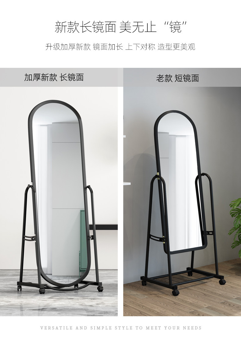 全身镜穿衣落地镜子家用女生卧室化妆试衣镜立体可调节试衣 ins风