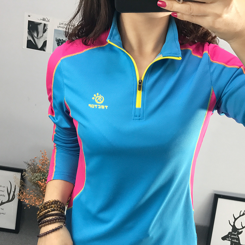 探拓户外女式速干衣t恤透气快干衣 女长袖立领防晒运动跑步登山服