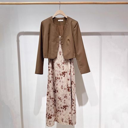 朵以2024秋装新款时尚碎花吊带裙V领短款西装外套两件39DQ808010