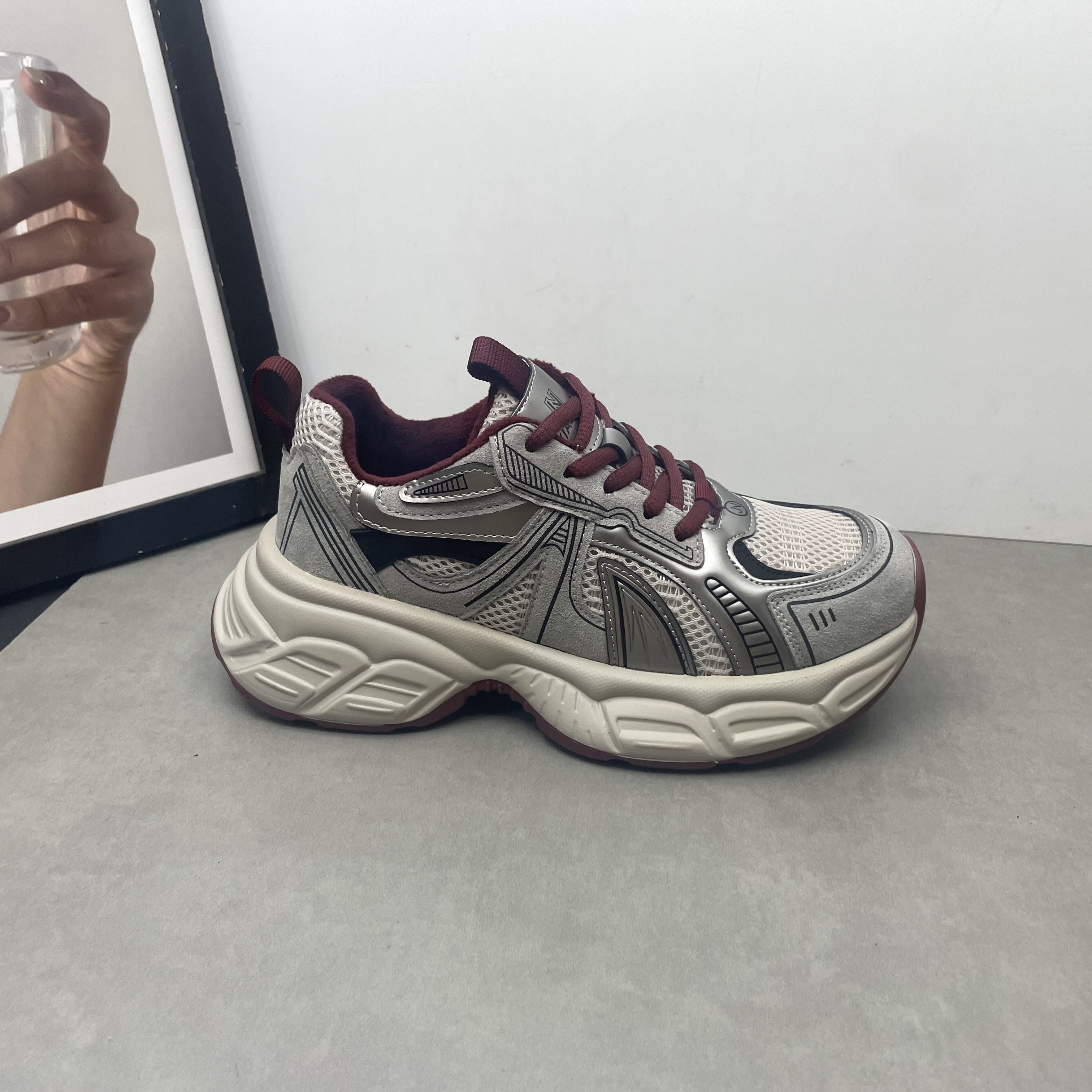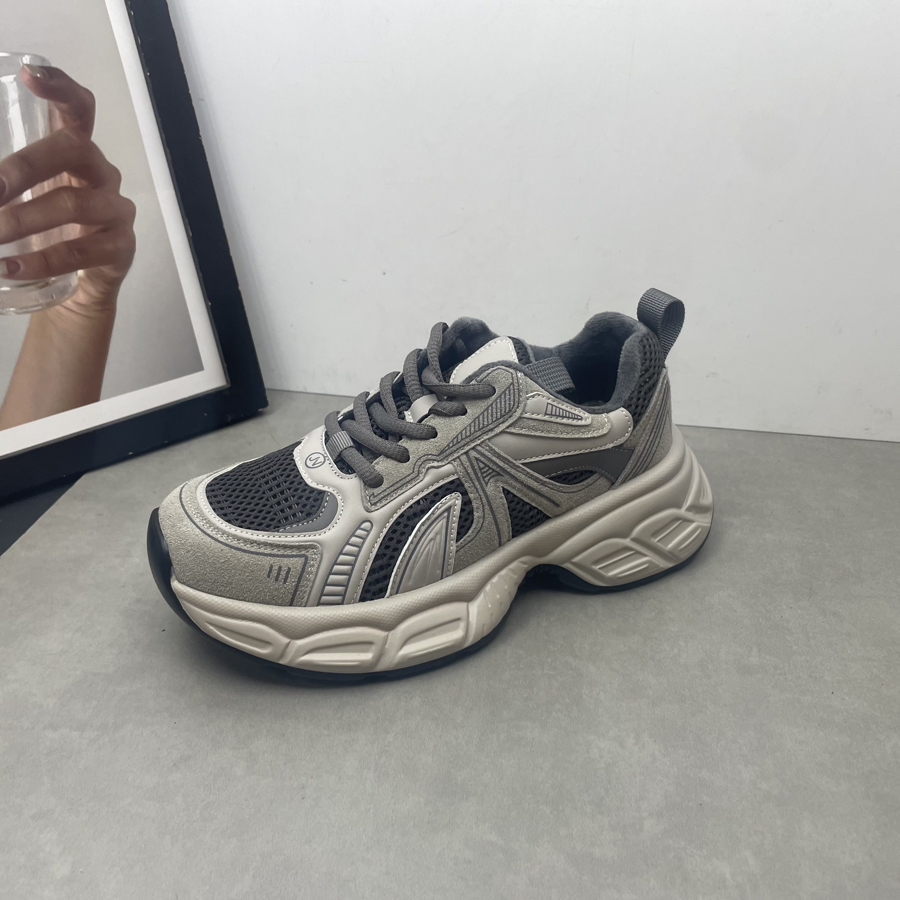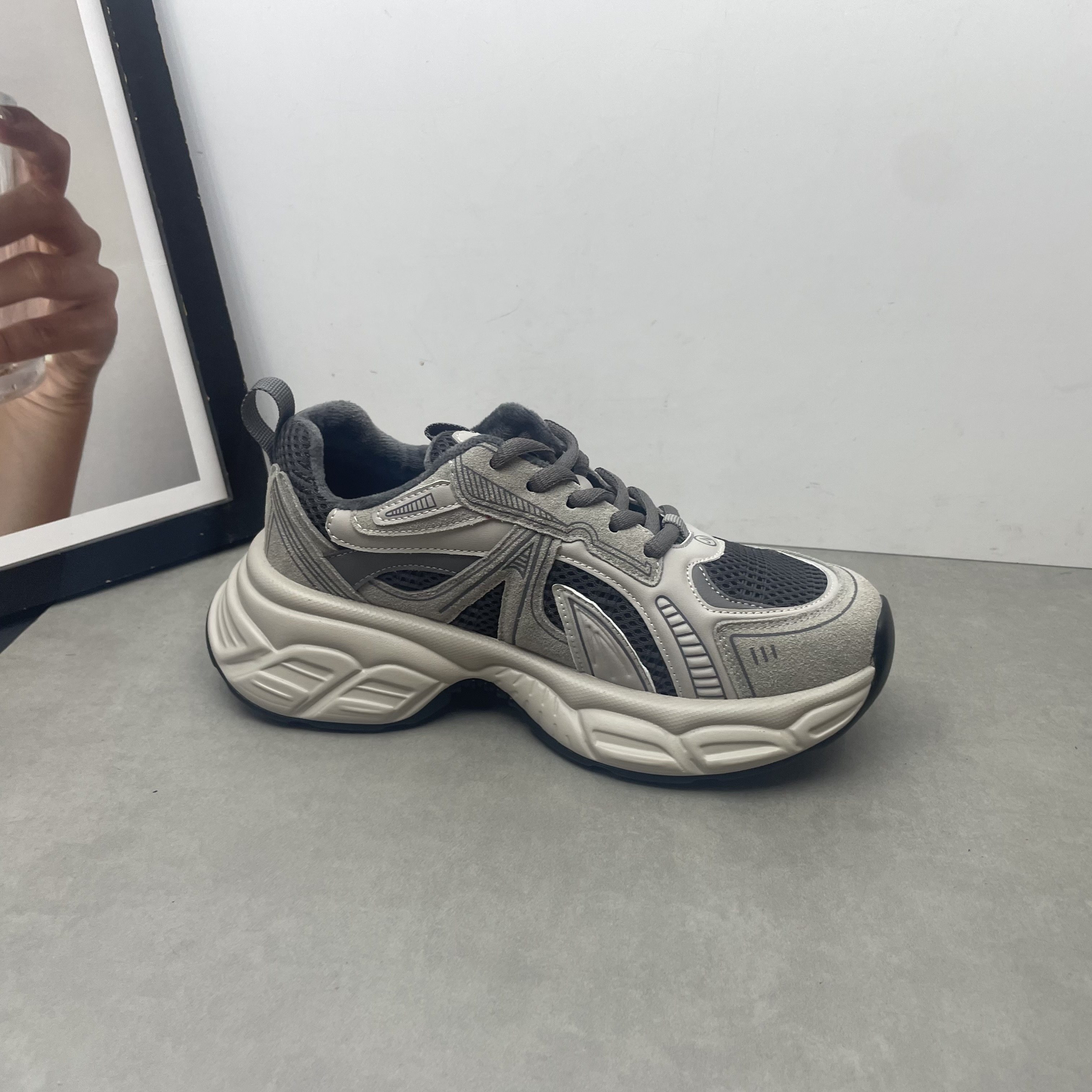2025秋冬新款真皮女鞋圆头深口系带松糕厚底加绒保暖老爹鞋女棉鞋