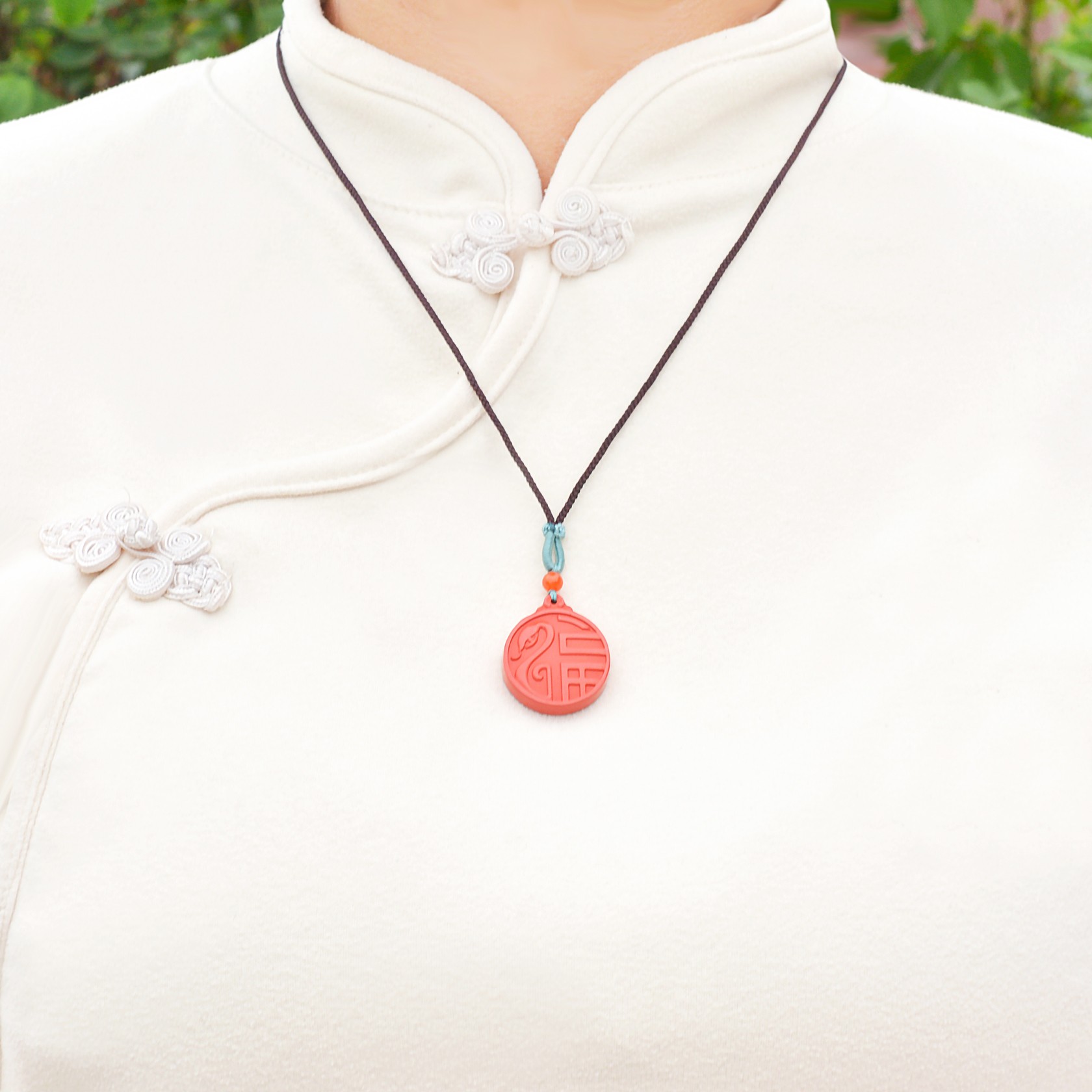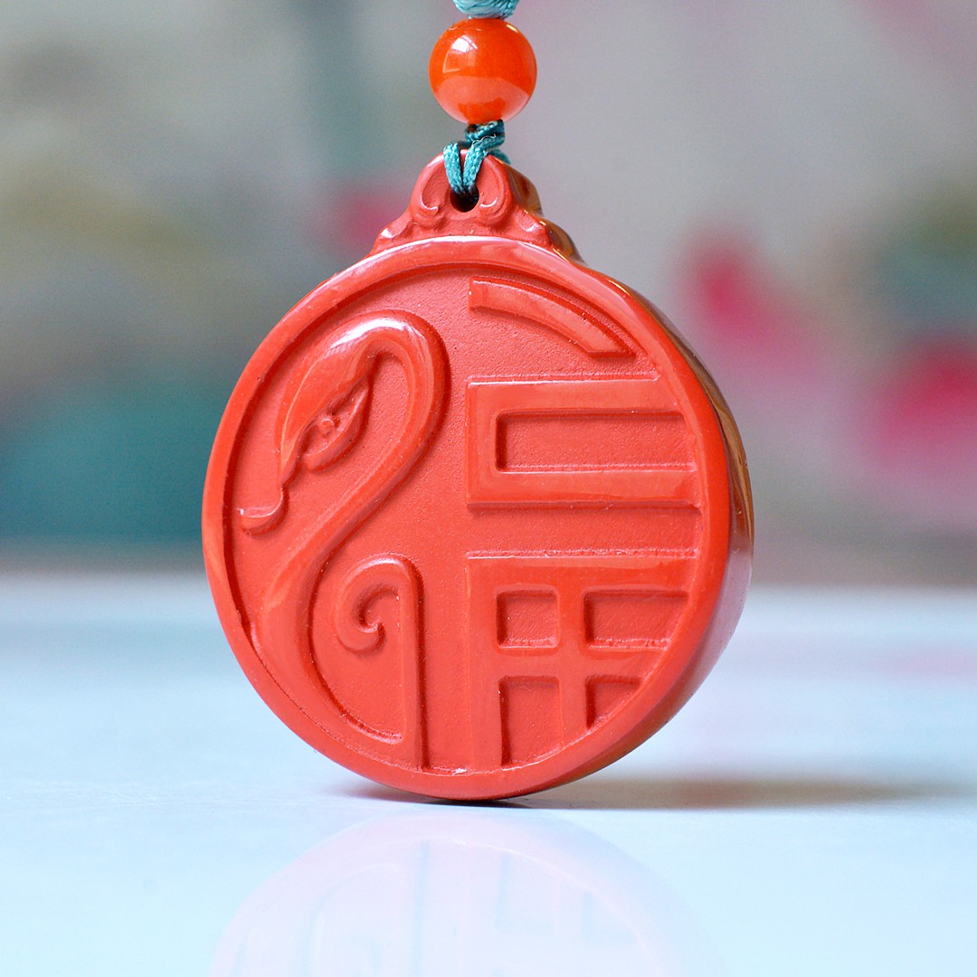 天然正品朱砂吊坠本命年红砂平安福牌挂件男女款福字项链饰品礼物