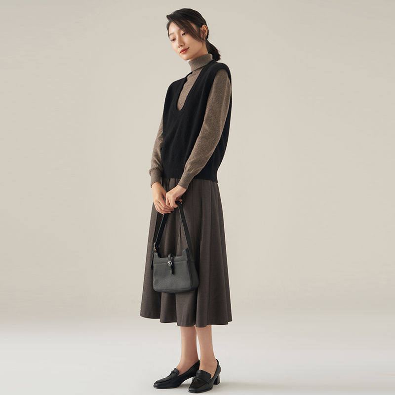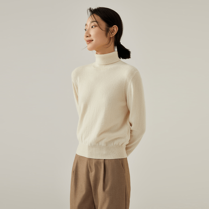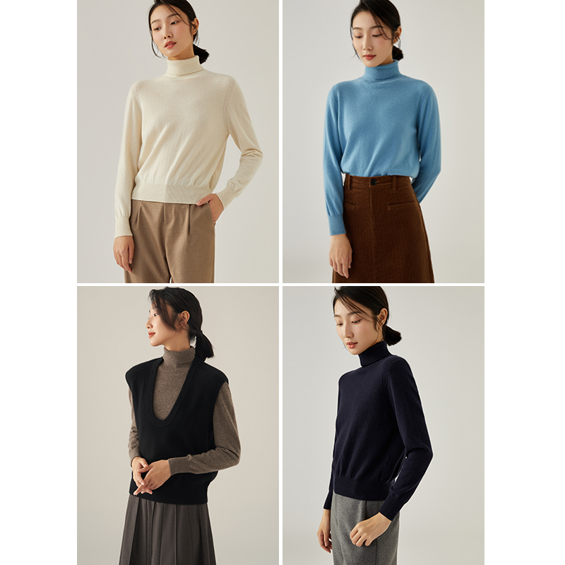 浅秋高领纯山羊绒毛衣冬季新款两翻领针织厚羊绒衫女上衣内搭
