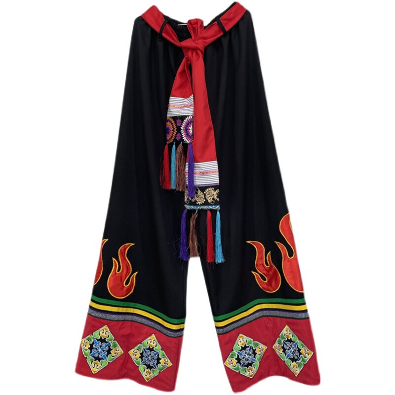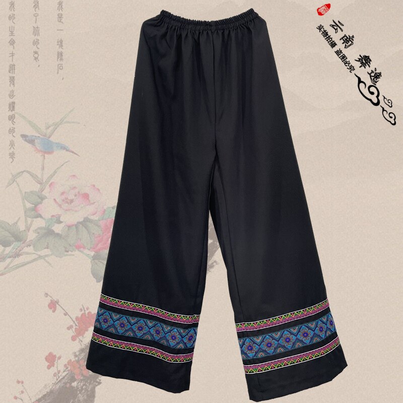 彝族成人男单裤子 苗族火把节男装长裤 壮族少数民族特色绣花黑裤