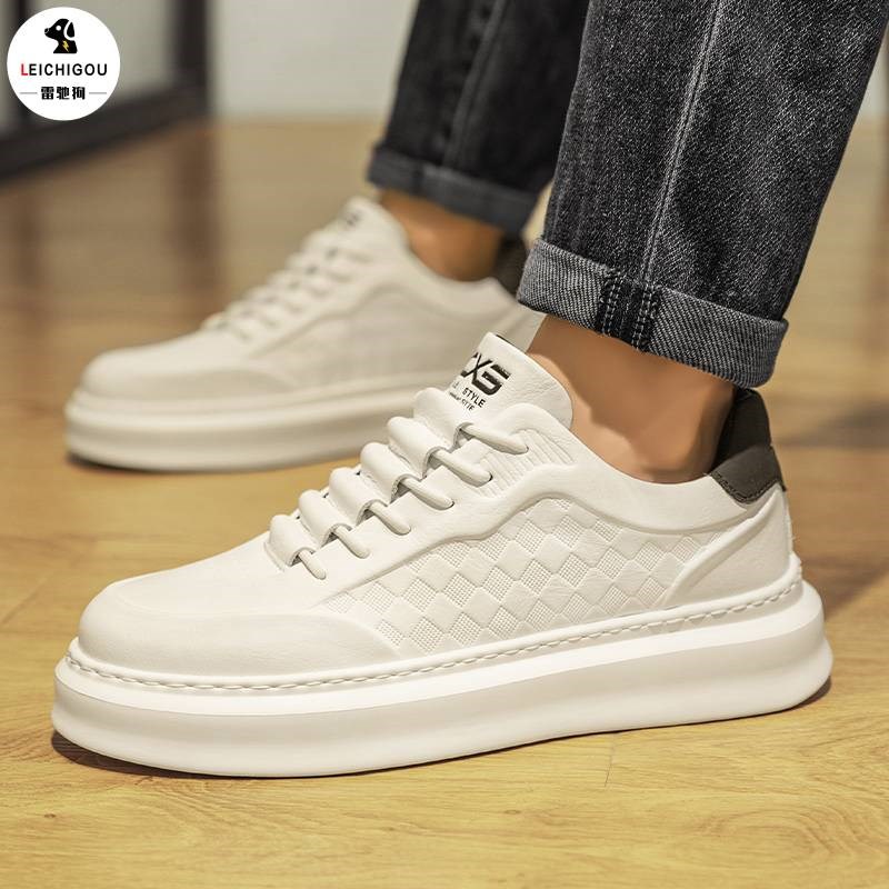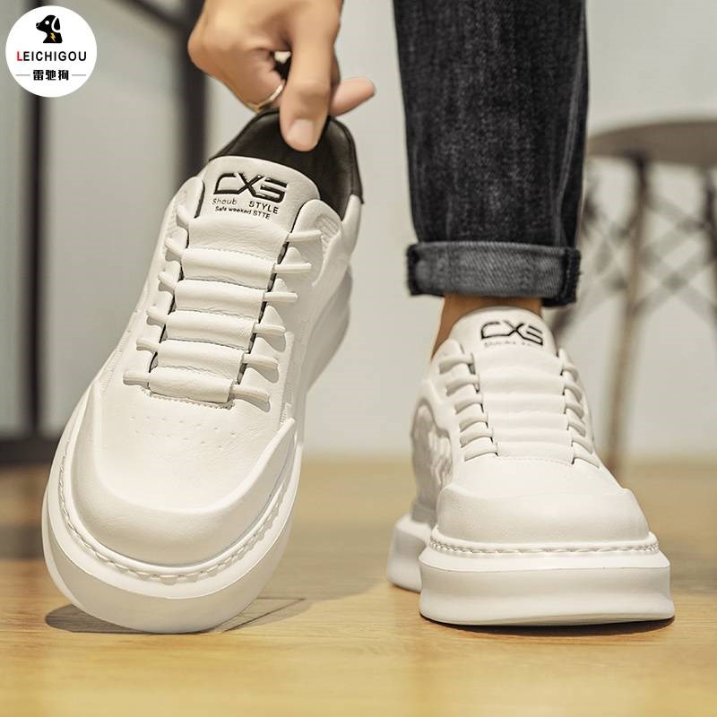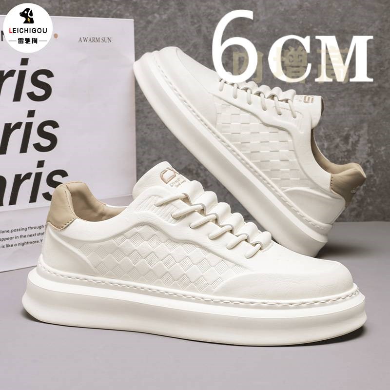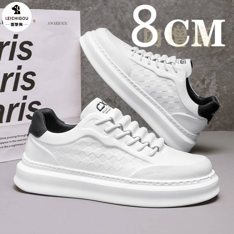男士时尚简约休闲 小白鞋男款夏季厚底内增高男鞋10cm皮面防