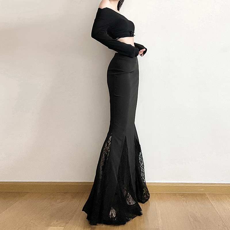 gagaopt鱼尾裙蕾丝拼接半身裙