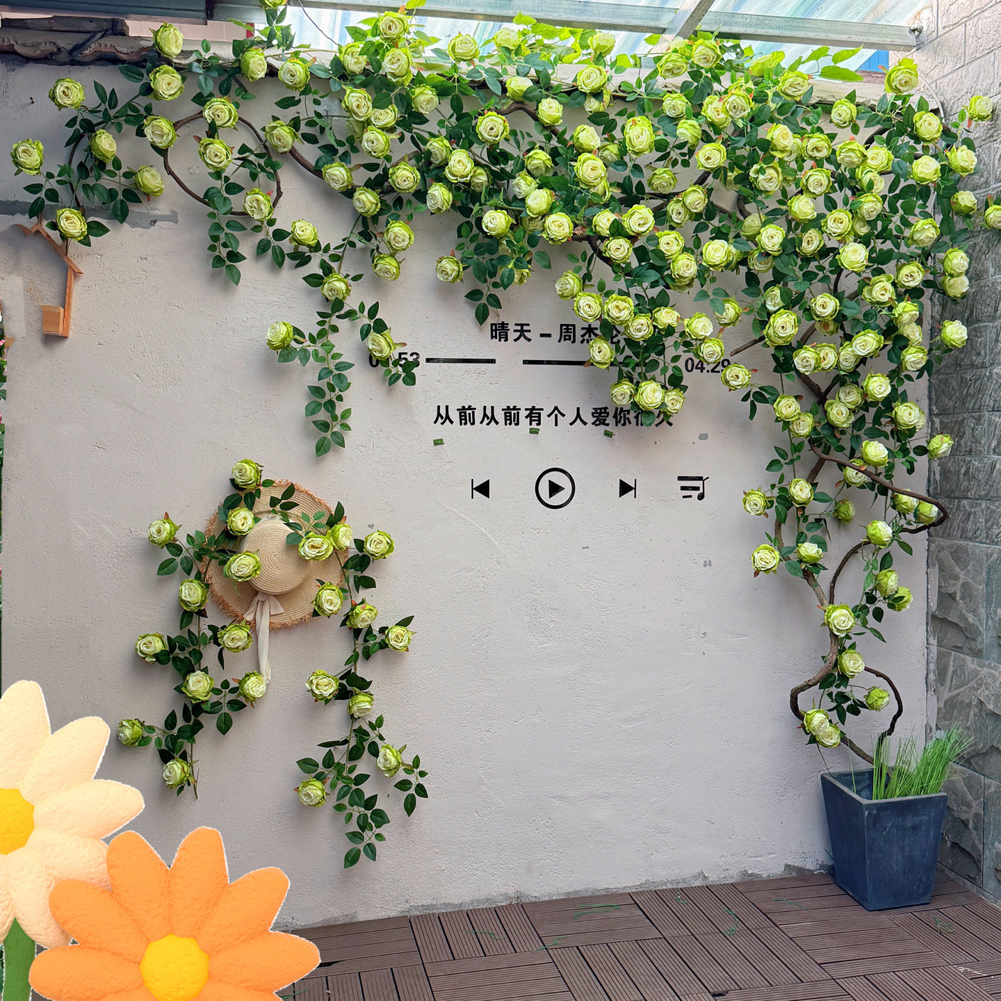 蓝白色系花墙造景网红打卡