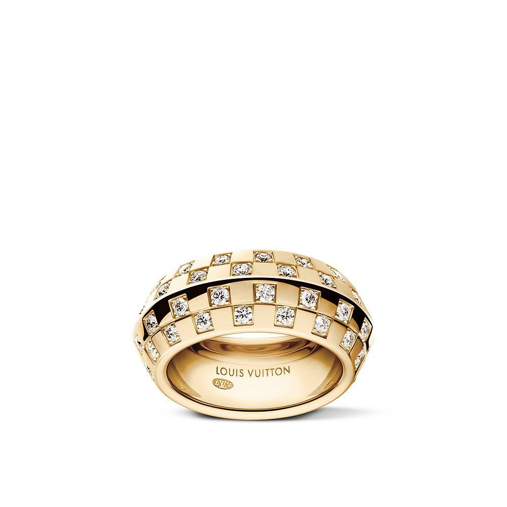 自营1h可退 欧洲直邮LV路易威登 Damier金色黄金棋盘格戒指男女通
