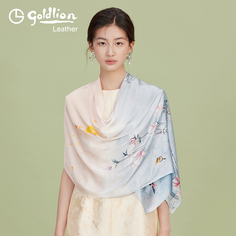 金利来温柔碎花围巾女春秋2025新款蓝色丝巾流行配饰大披肩围脖潮