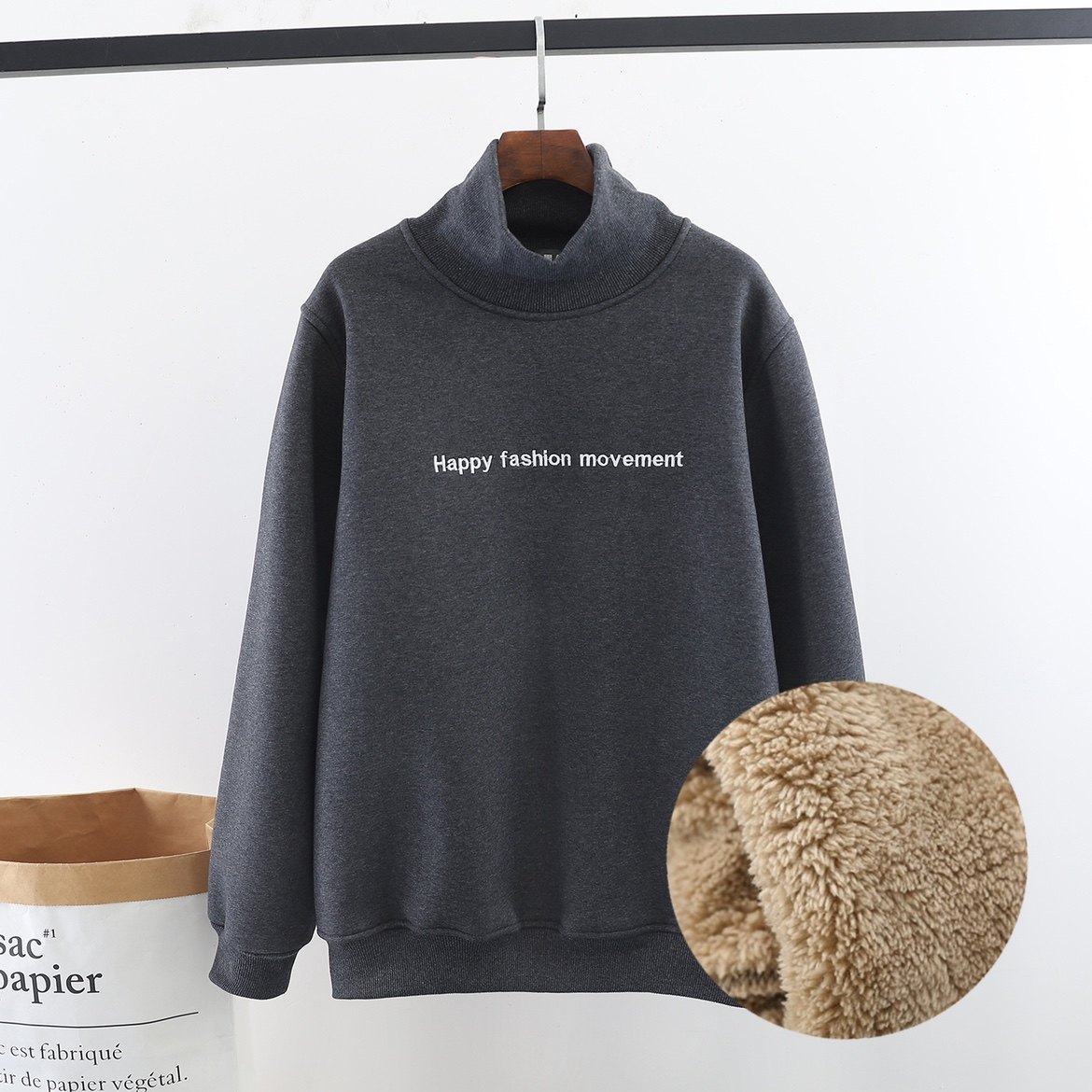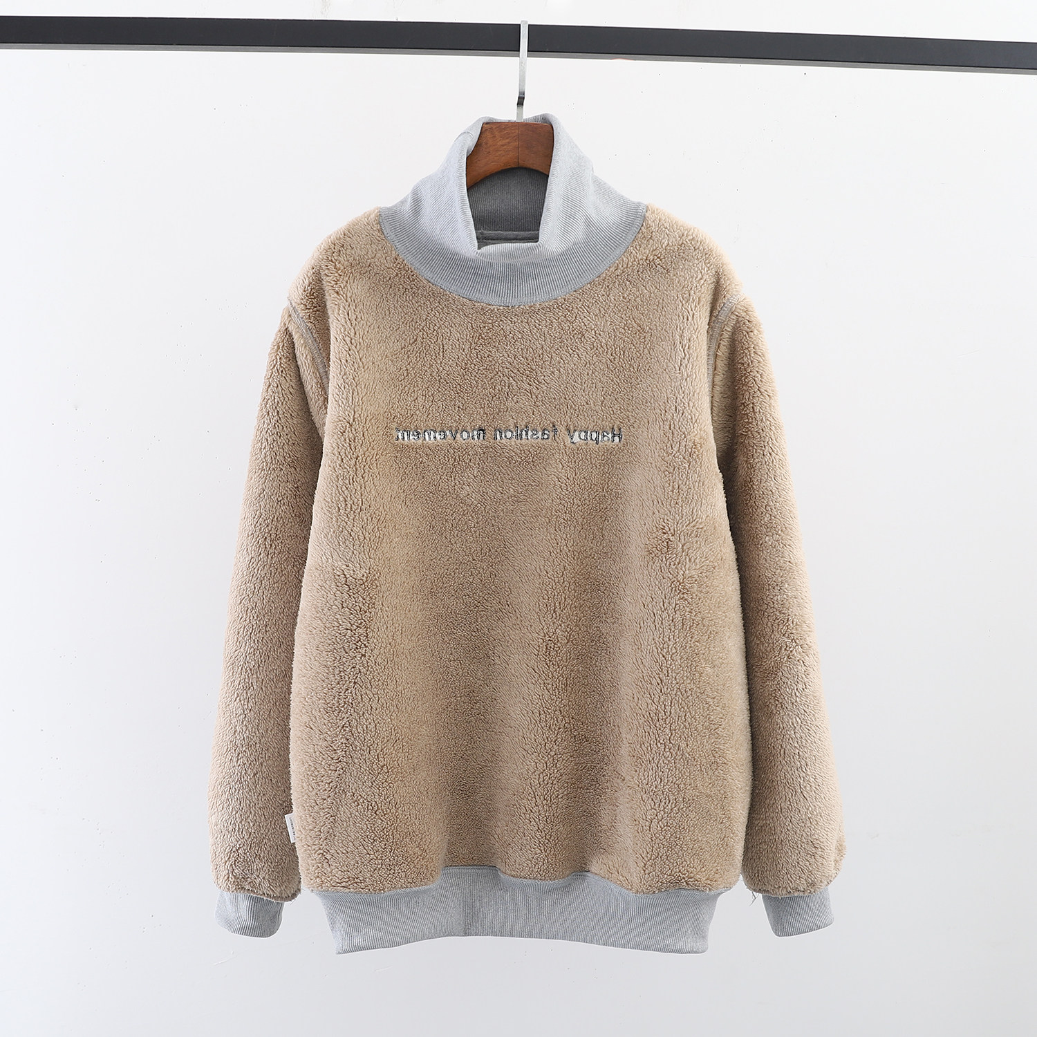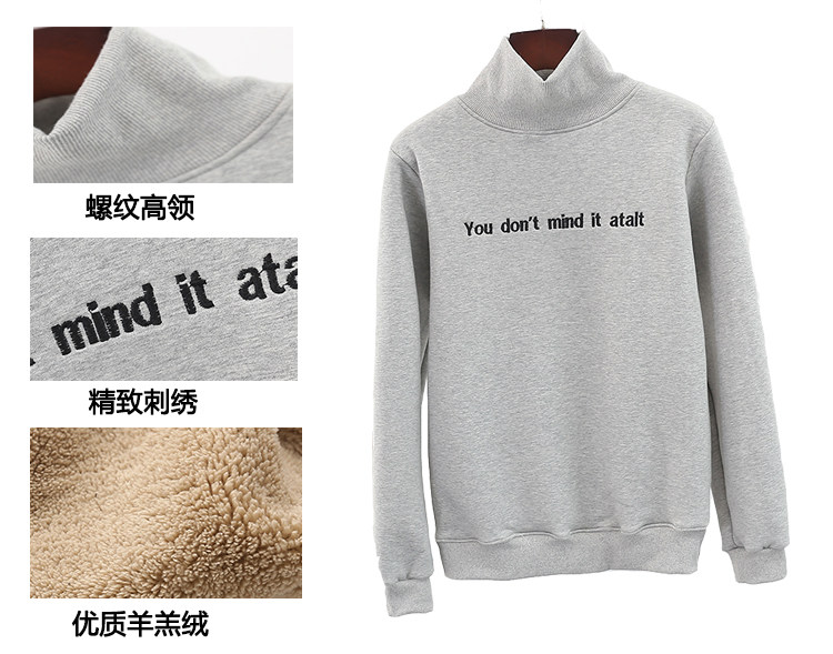 羊羔绒高领卫衣女秋冬新款学生宽松套头打底上衣毛加绒加厚外套男