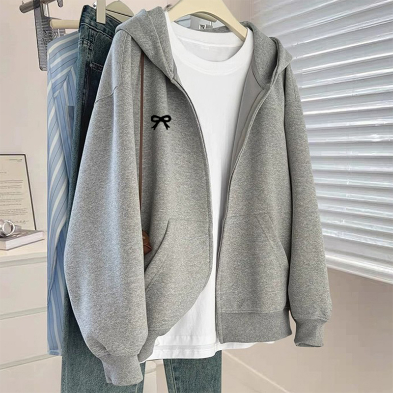 小个子连帽开衫卫衣女2025秋冬新款韩版宽松大码胖mm遮肉外套上衣