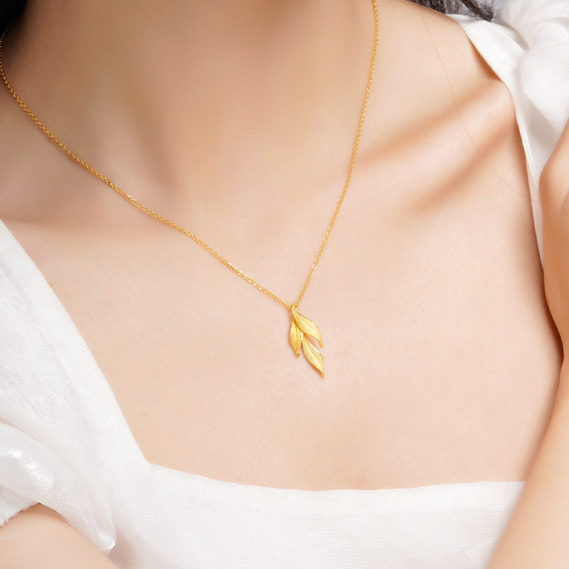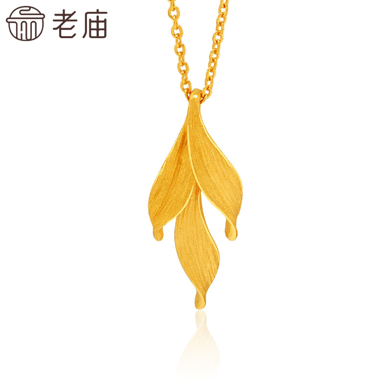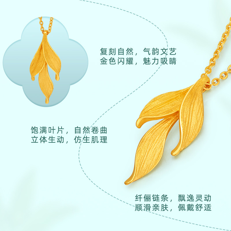 老庙黄金足金橄榄叶小清新橄榄枝叶金叶子自然文艺金项链礼物正品