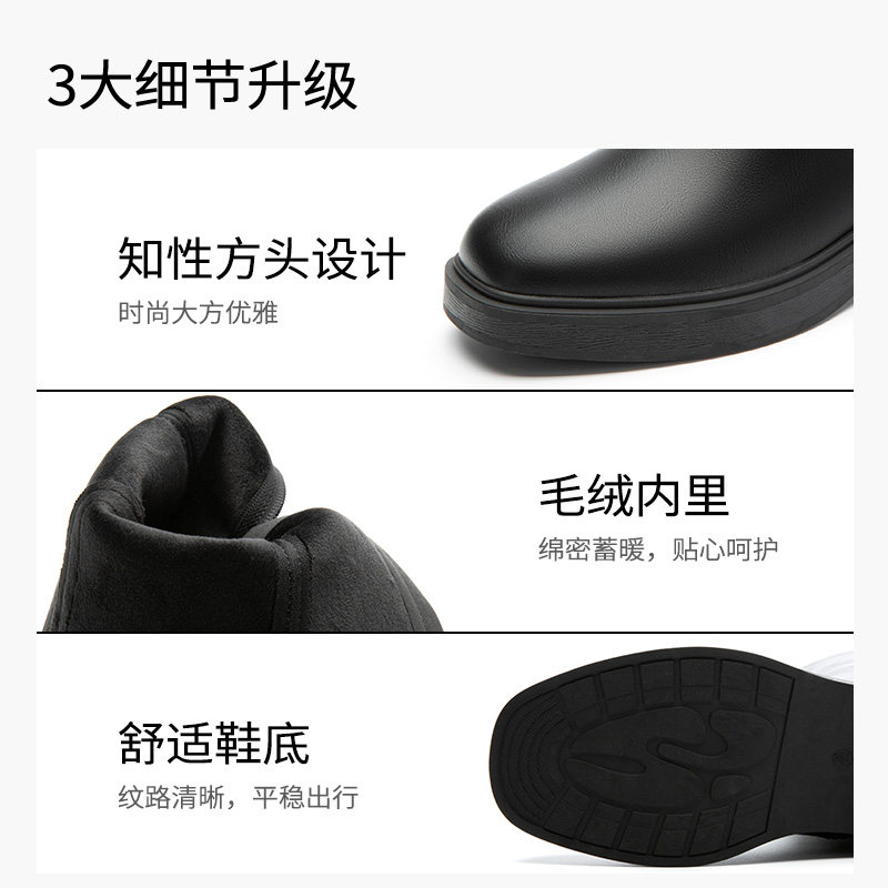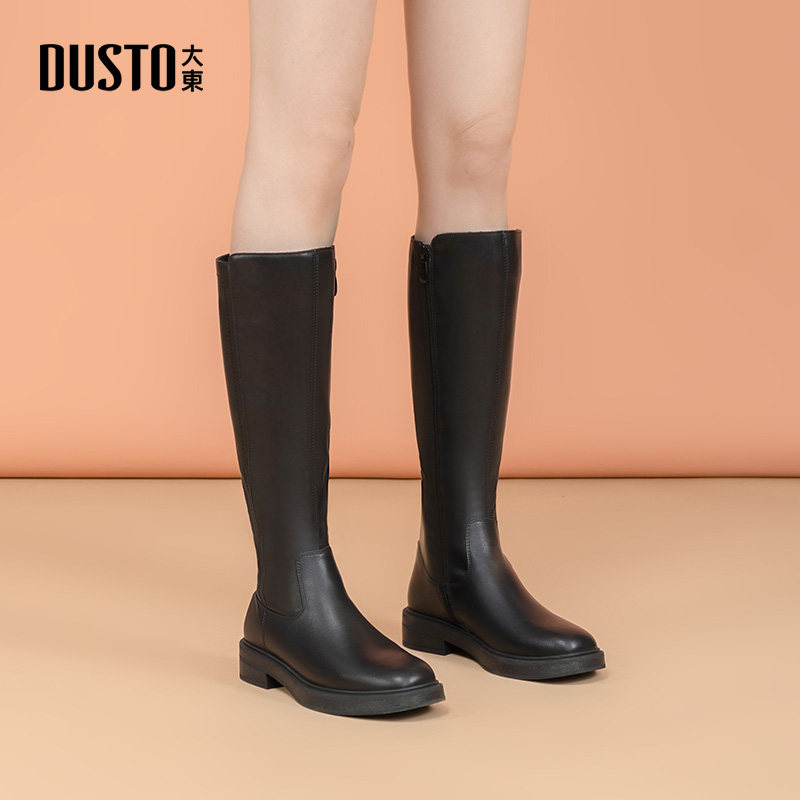 大东骑士靴女鞋2025冬季新款时尚粗跟中跟侧拉链方头D0199