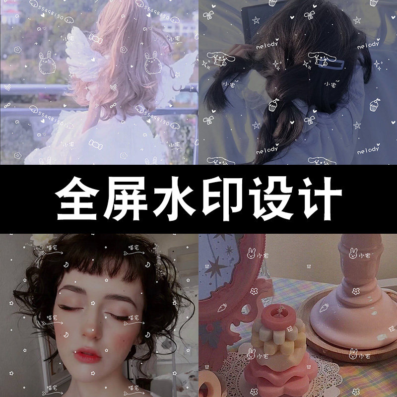 全屏水印设计淘宝微商简约线条清新唯美透明防盗满屏水印制作图片