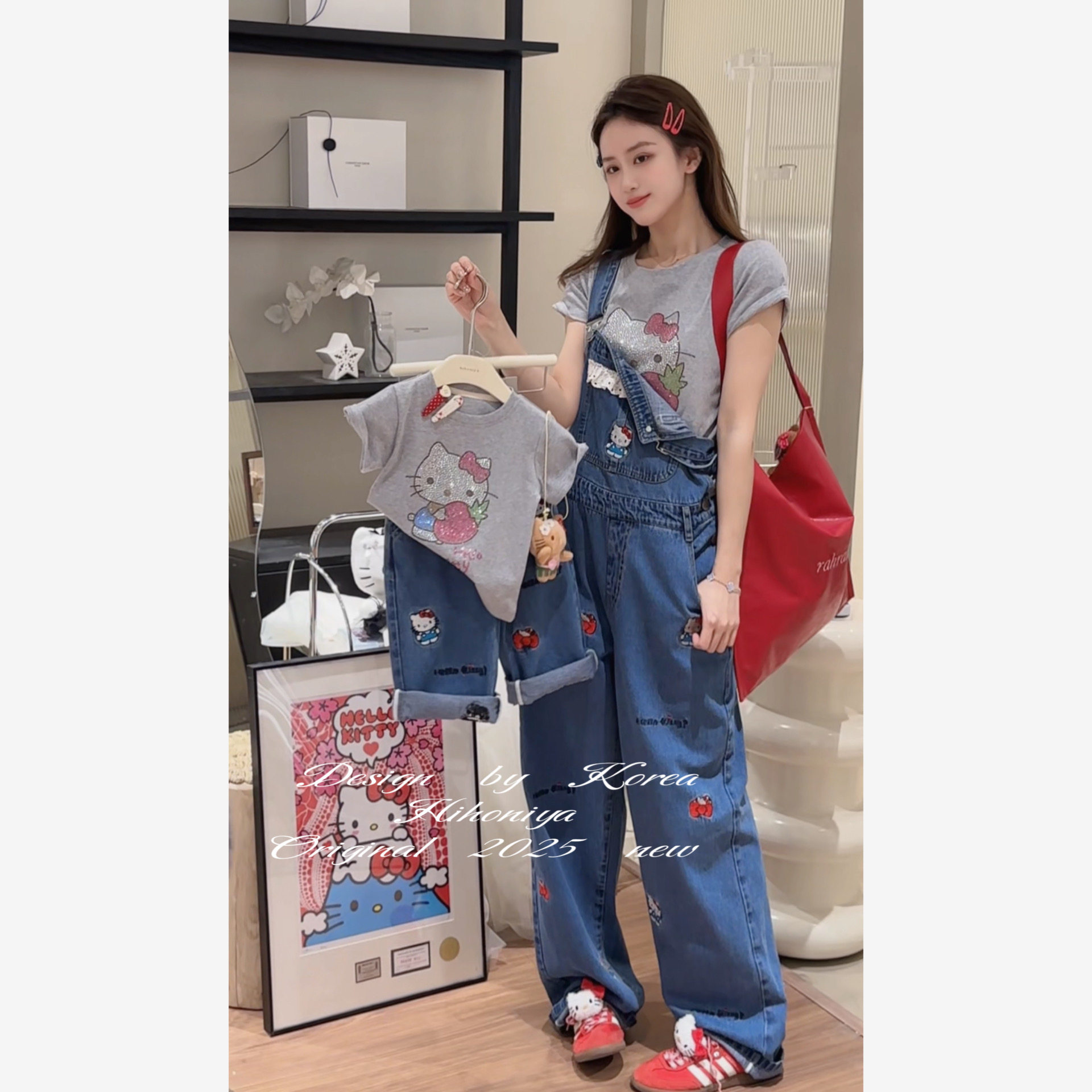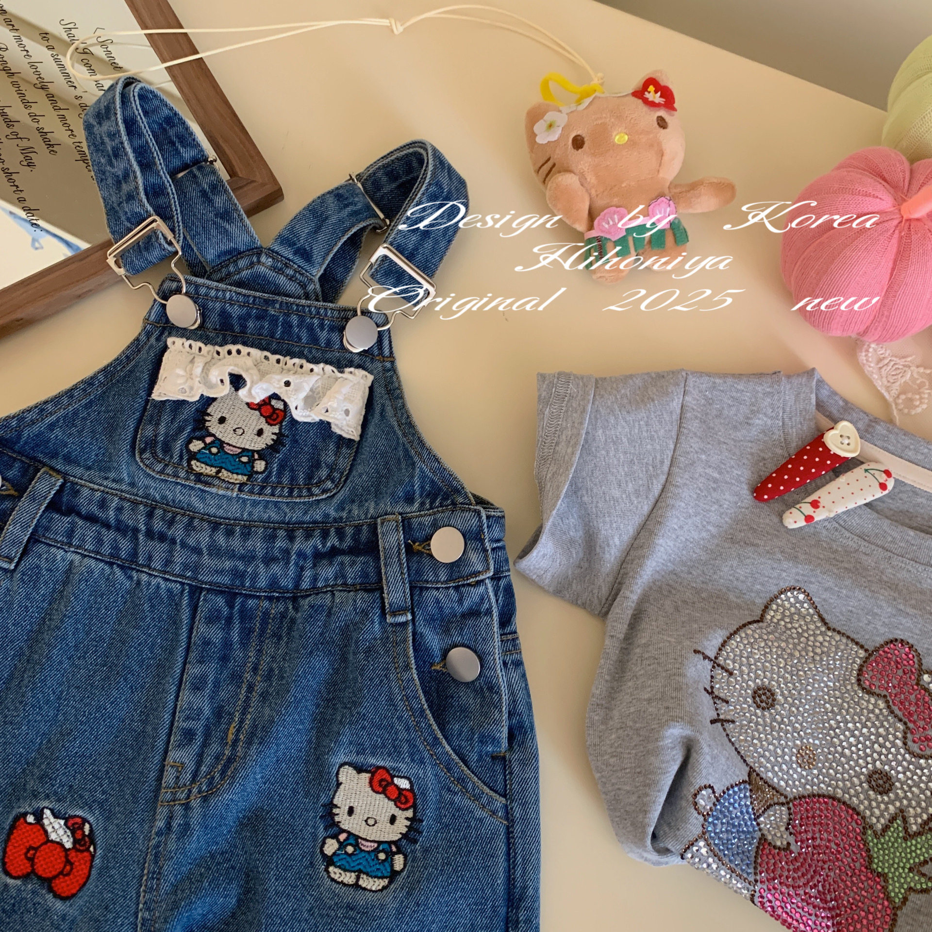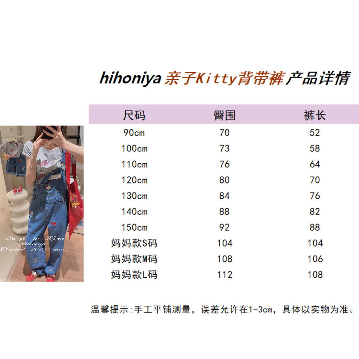Spring韩国童装2025春夏新款亲子刺绣Kitty韩版背带裤女童休闲裤