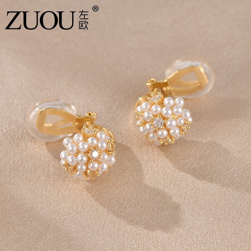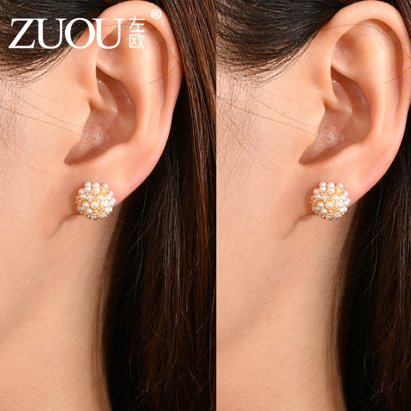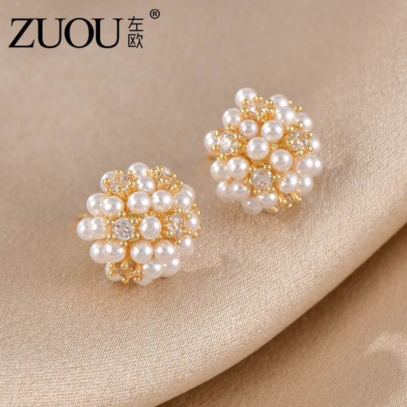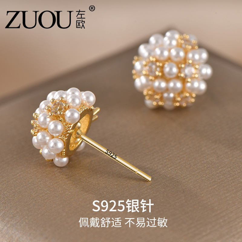 镶钻珍珠绣球花苞耳钉女2025新款气质耳环小众设计感高级耳饰耳夹