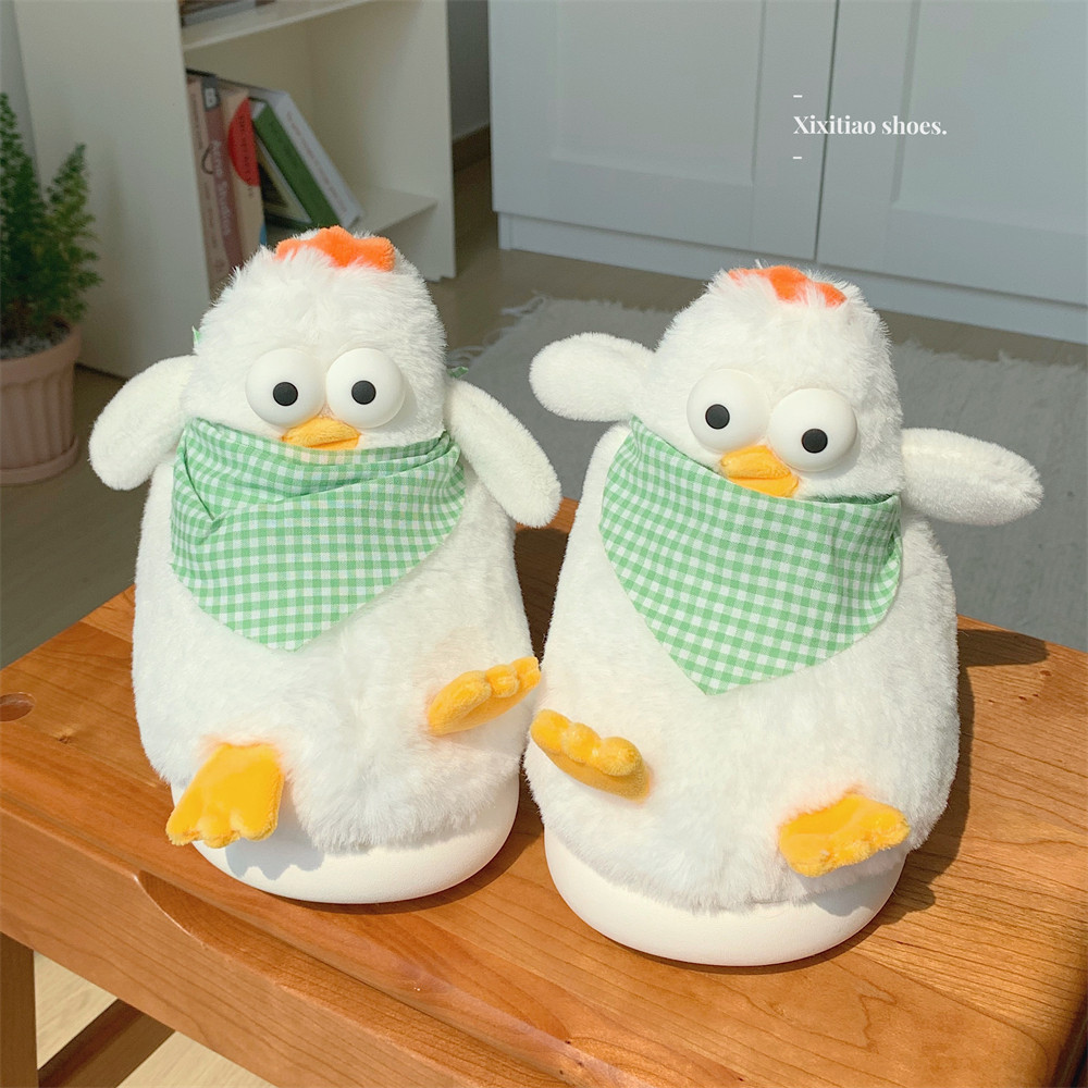 细细条 毛绒绒可爱立体小鸡棉拖鞋女2025冬季新款网红居家月子鞋