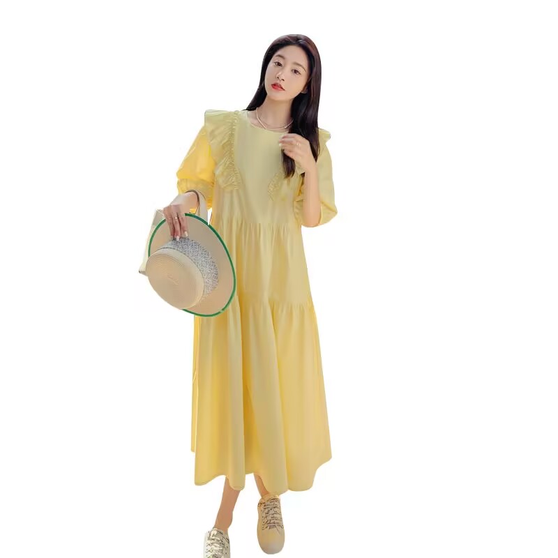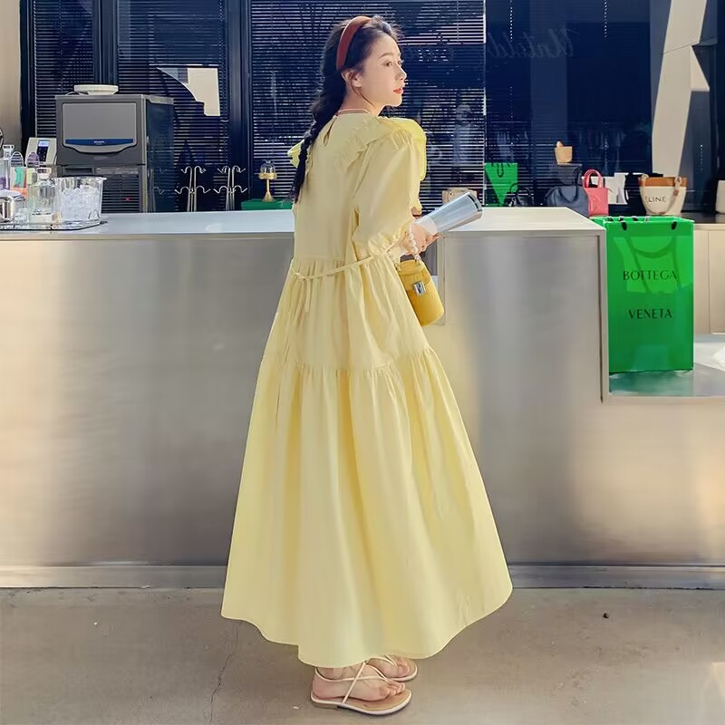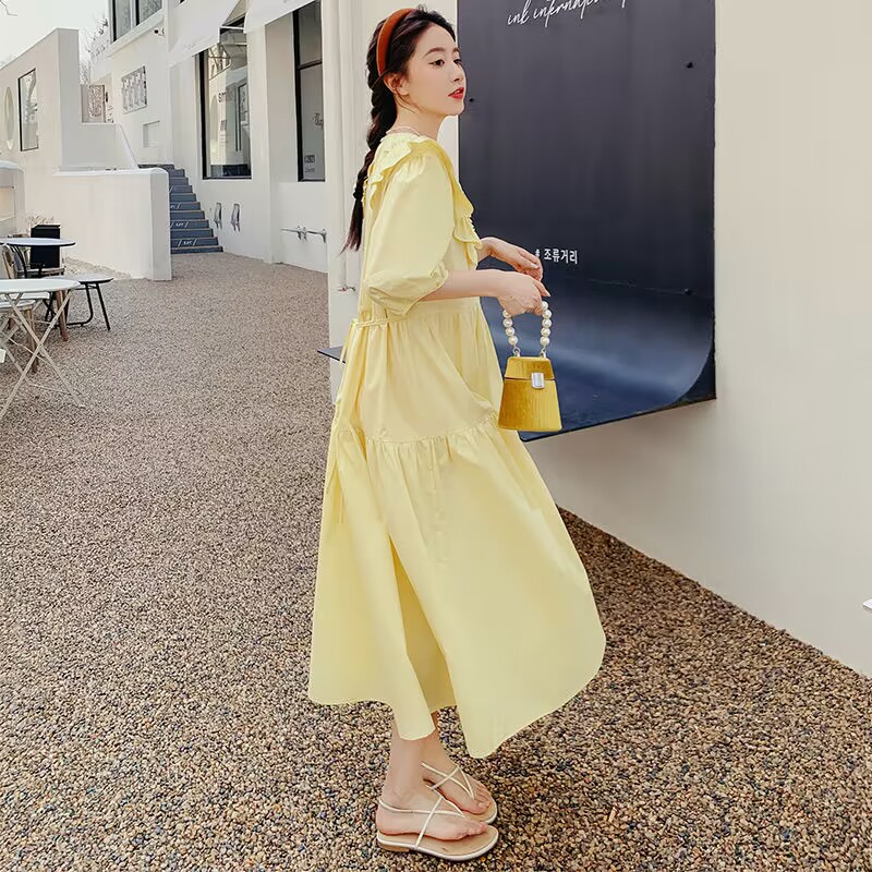 淡黄色娃娃领连衣裙女夏法式泡泡袖甜美温柔风初恋仙女森系茶歇裙