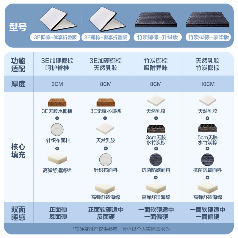 富安娜椰棕床垫黄麻护脊儿童薄硬垫子折叠榻榻米乳胶学生宿舍床垫