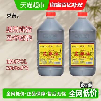 绍兴花雕酒乘黄五年陈2.5L*2桶调味料酒桶装黄酒炒菜绍兴老酒